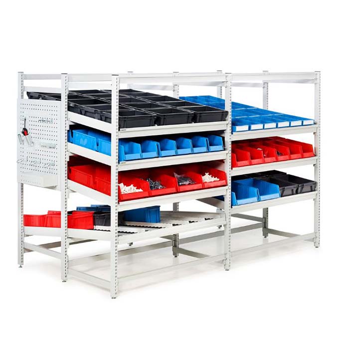 Racks for live picking are slightly inclined platforms of wheels and roller, which guarantee an optimal entry and exit of goods.